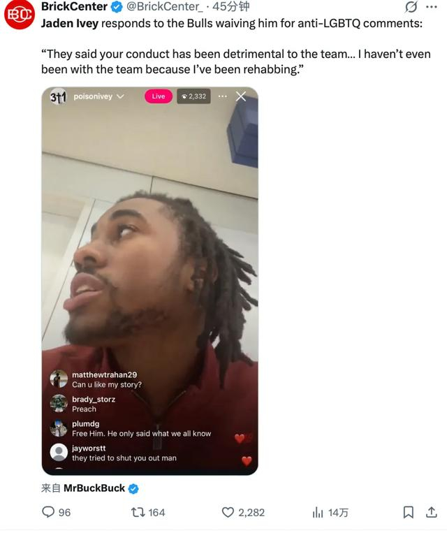 根据shams的消息,公牛裁掉艾维,正是因为这些反LGBTQ的言论。