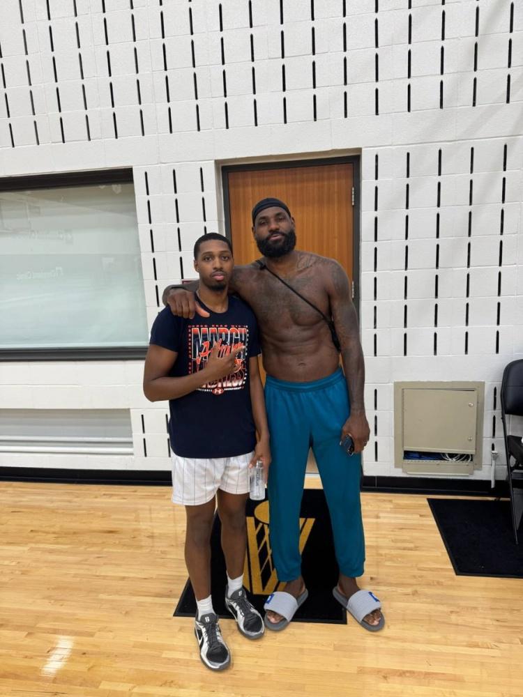网站入口-重回故地詹姆斯今日现身骑士训练馆 与骑士夏联新秀合影